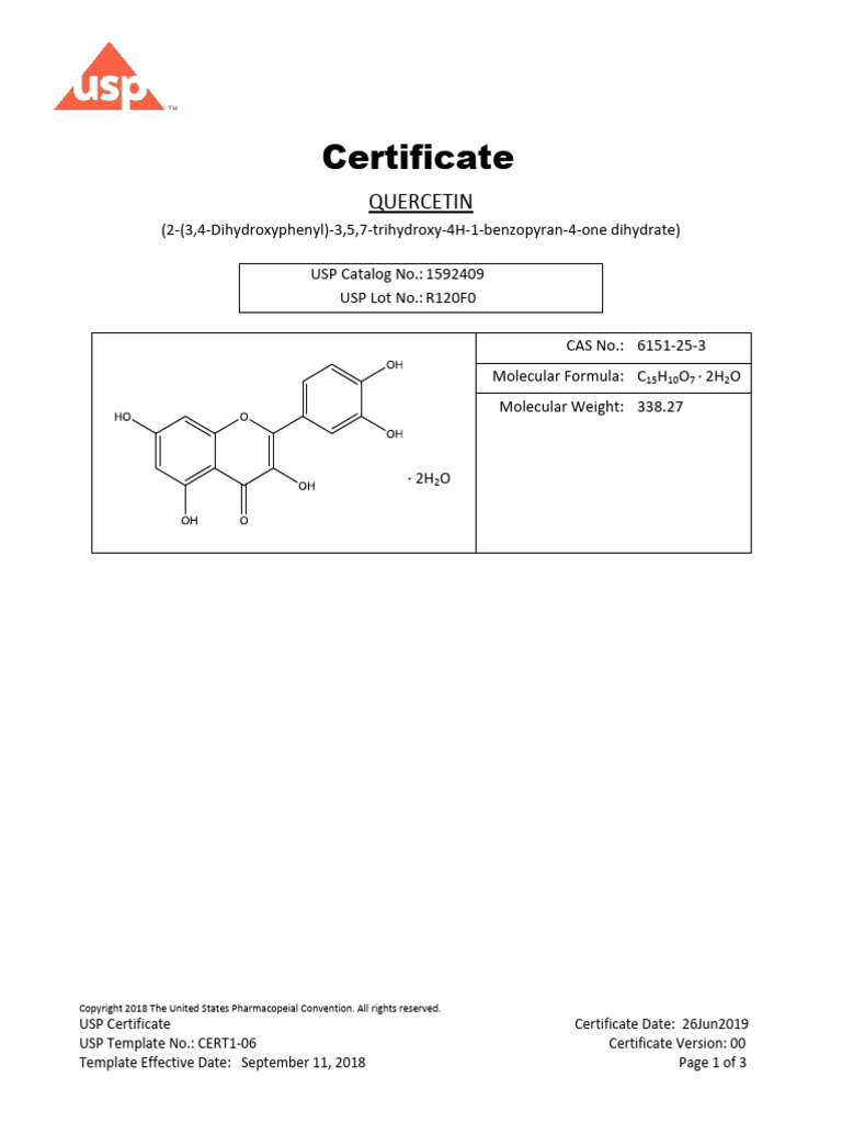 Usp Standard Coa 1592409R120F0 PDF