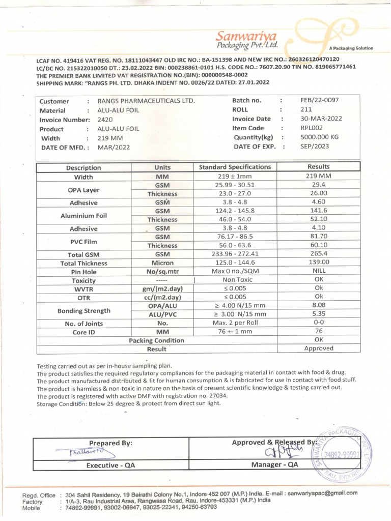 COA of 50ml Clear Infusion Bottles USP Type II PDF Glasses Materials