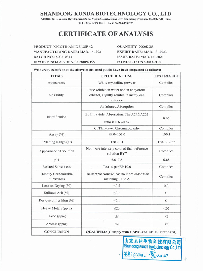 Coa Nicotinamide Usp 42 PDF