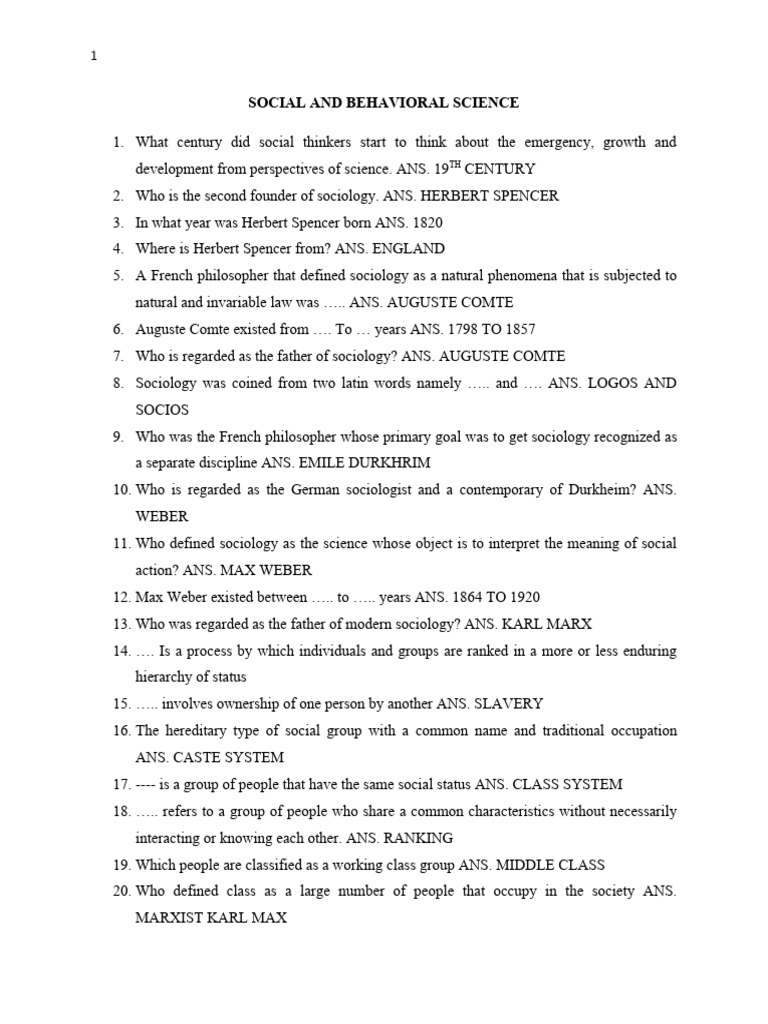 Social and Behavioral Science Complete Work Done PDF Sociology