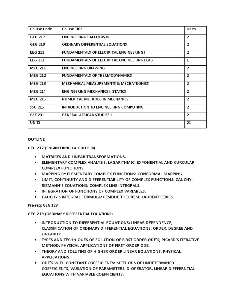 Mechanical Engineering Course Outline PDF Ordinary Differential