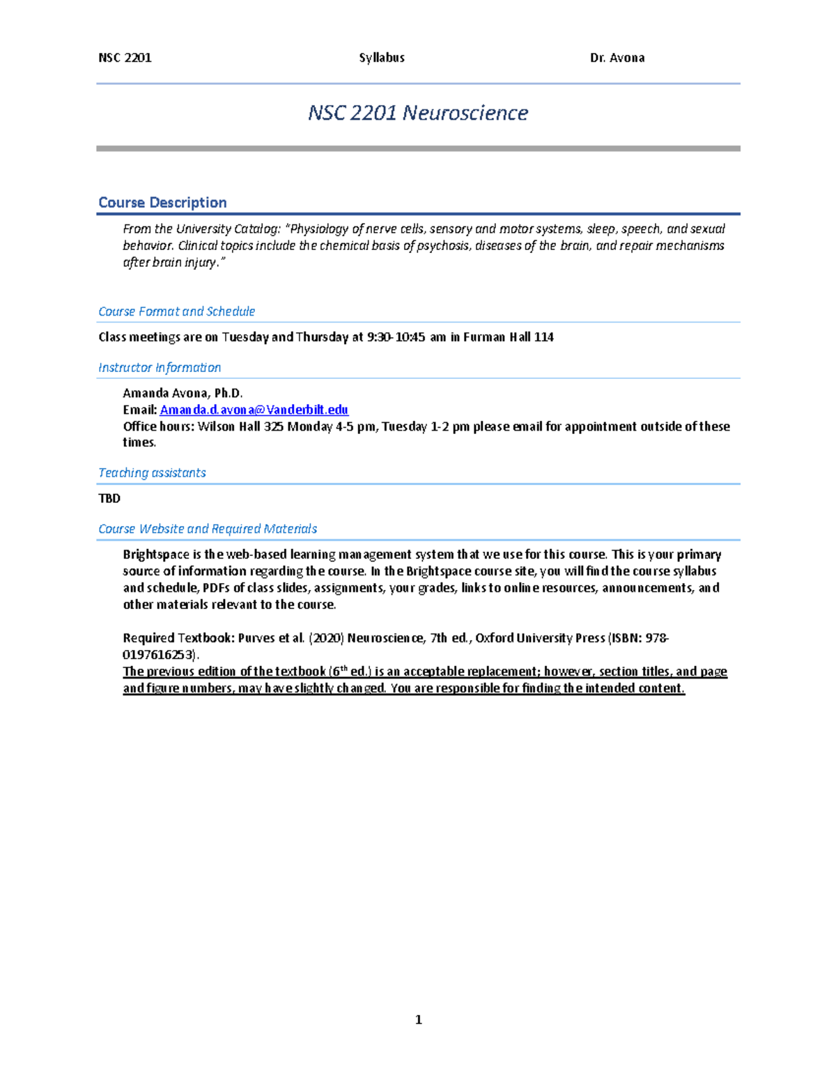 NSC2201 Syllabus F23 NSC 2201 Neuroscience Course Description From