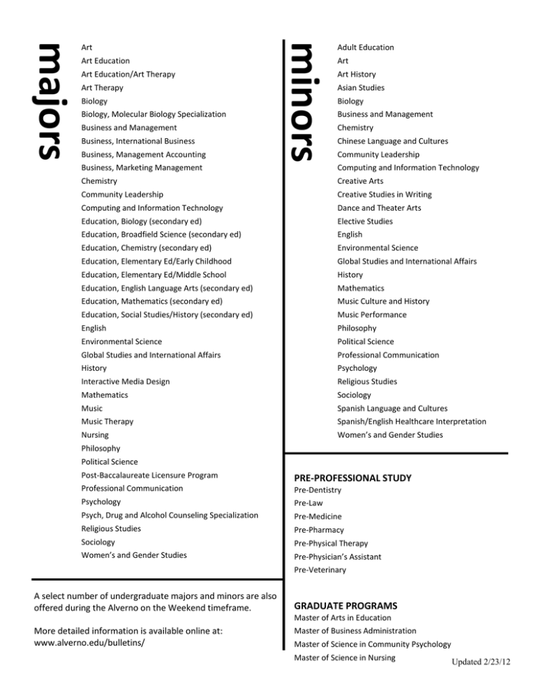 Undergraduate Majors and Minors List Elmira College Modern Campus
