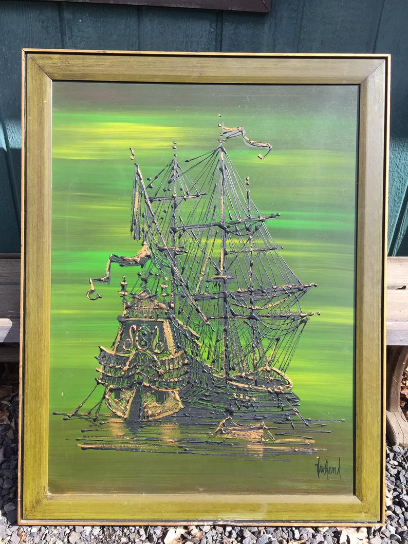 Giant 1967 Vanguard Studios Inc Pirate Schooner Ship Painting w