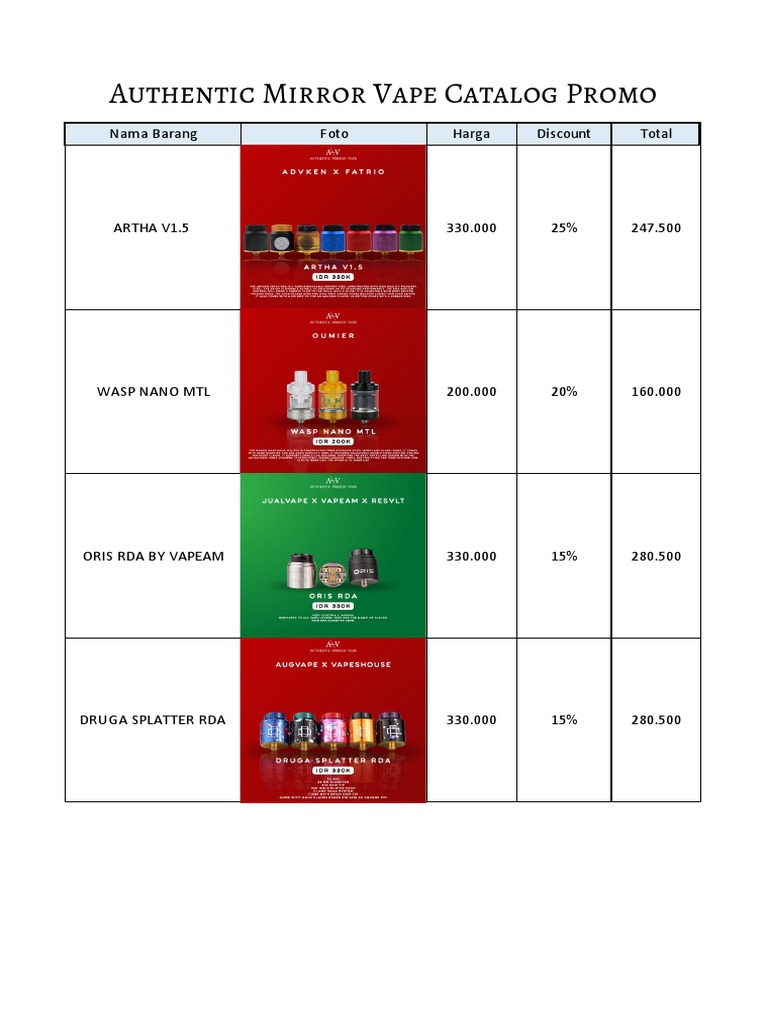 Authentic Mirror Vape Catalog Promo Nama Barang Foto Harga Discount