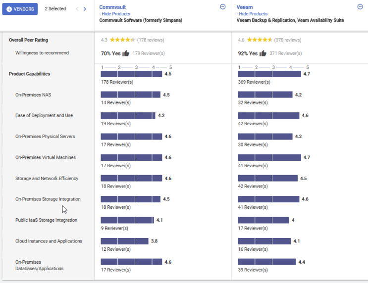 Commvault vs Veeam Software Comparably
