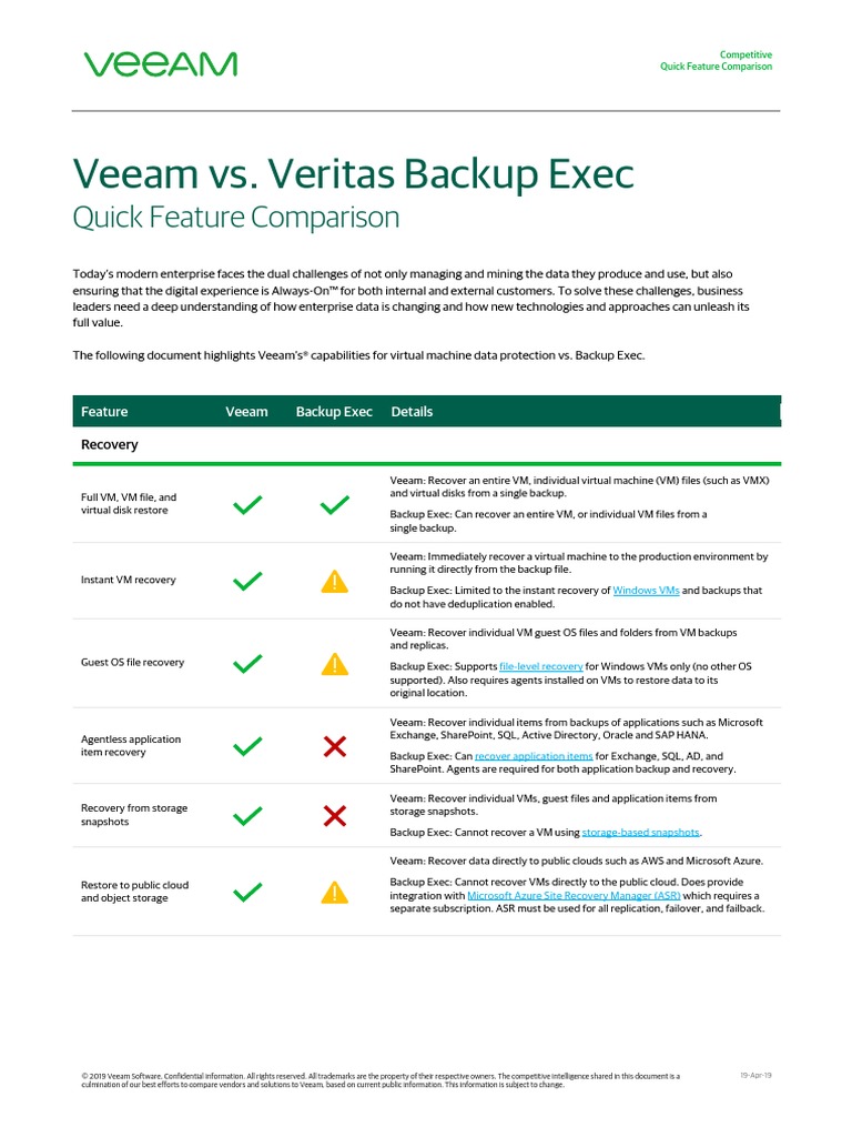 Veeam vs. Veritas Backup Exec Quick Feature Comparison PDF Backup