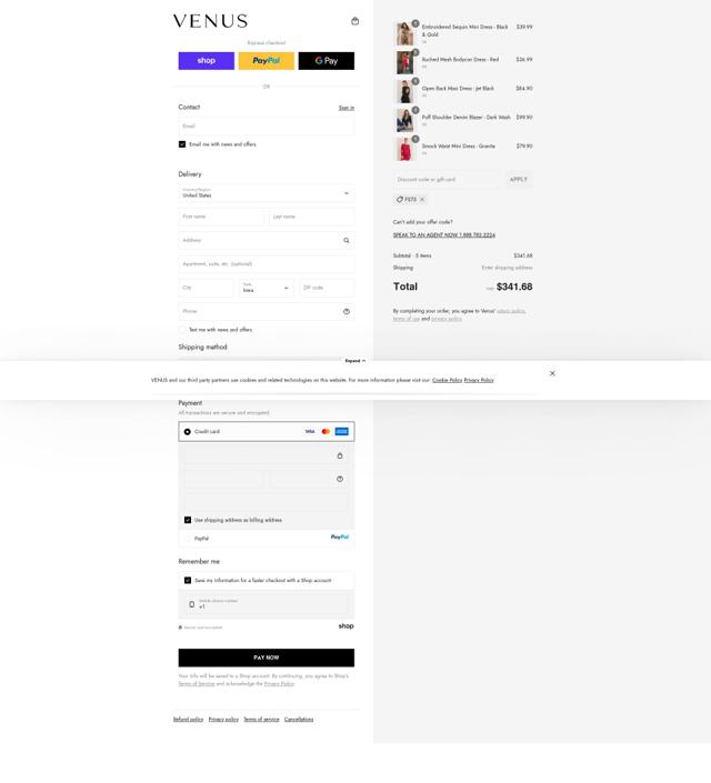 Extra 50 off at Venus via promo code SHORE23 Venus October 2025