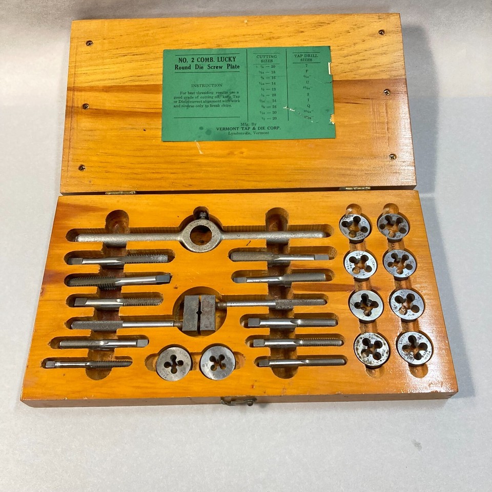 Vintage Vermont Lucky Tap & Die Set 24 Pc Adjustable Wood Case USA eBay
