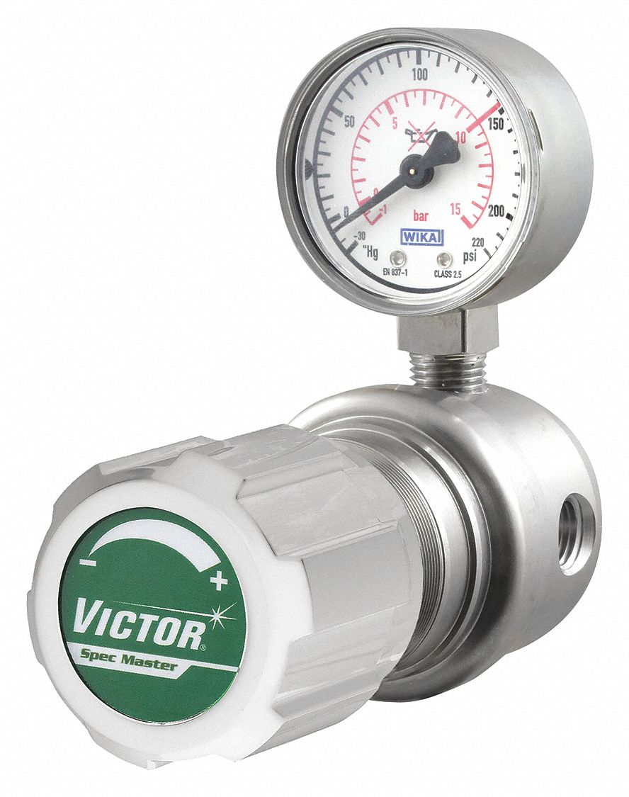 VICTOR, Single Stage, CGA 200 Inlet, Specialty Gas Regulator 49JP43