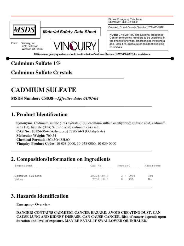 Cadmium Sulfate 1 Cadmium Sulfate Crystals PDF Cadmium Breathing