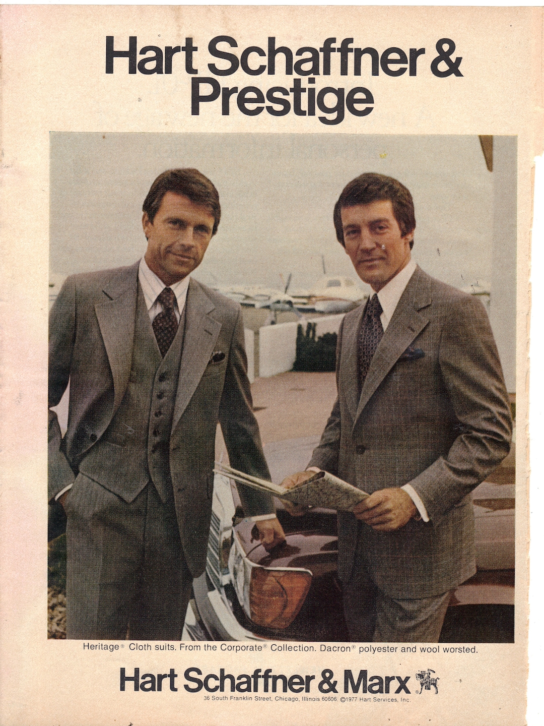 Vintage 1977 Print Ad for Hart Schaffner & Marx Suits and HP01 Watch