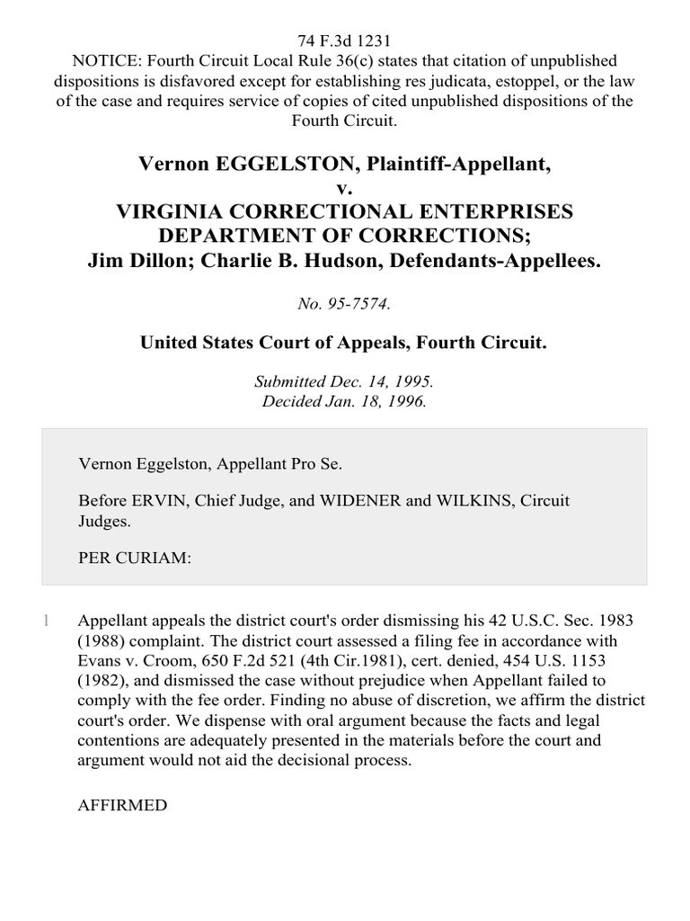 Vernon Eggelston v. Virginia Correctional Enterprises Department of