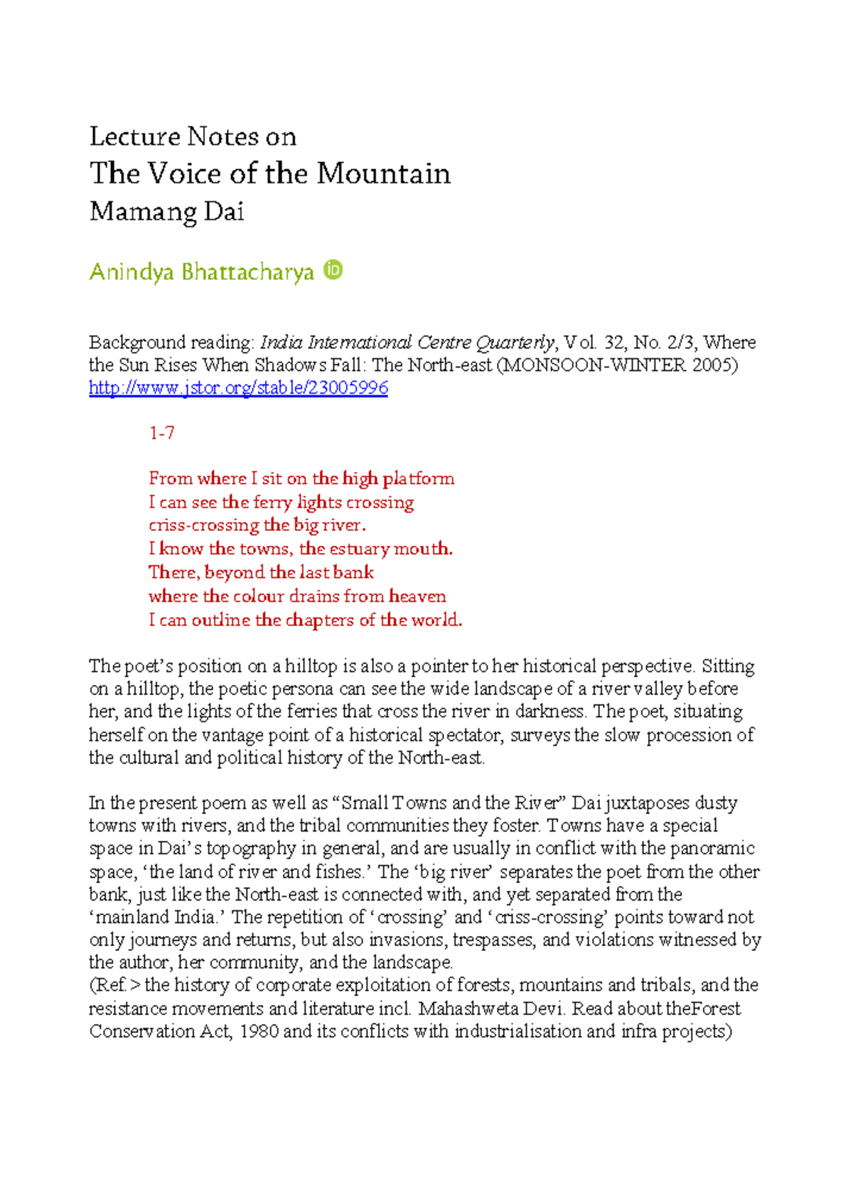 The voice of the mountains Lecture Notes on The Voice of the Mountain
