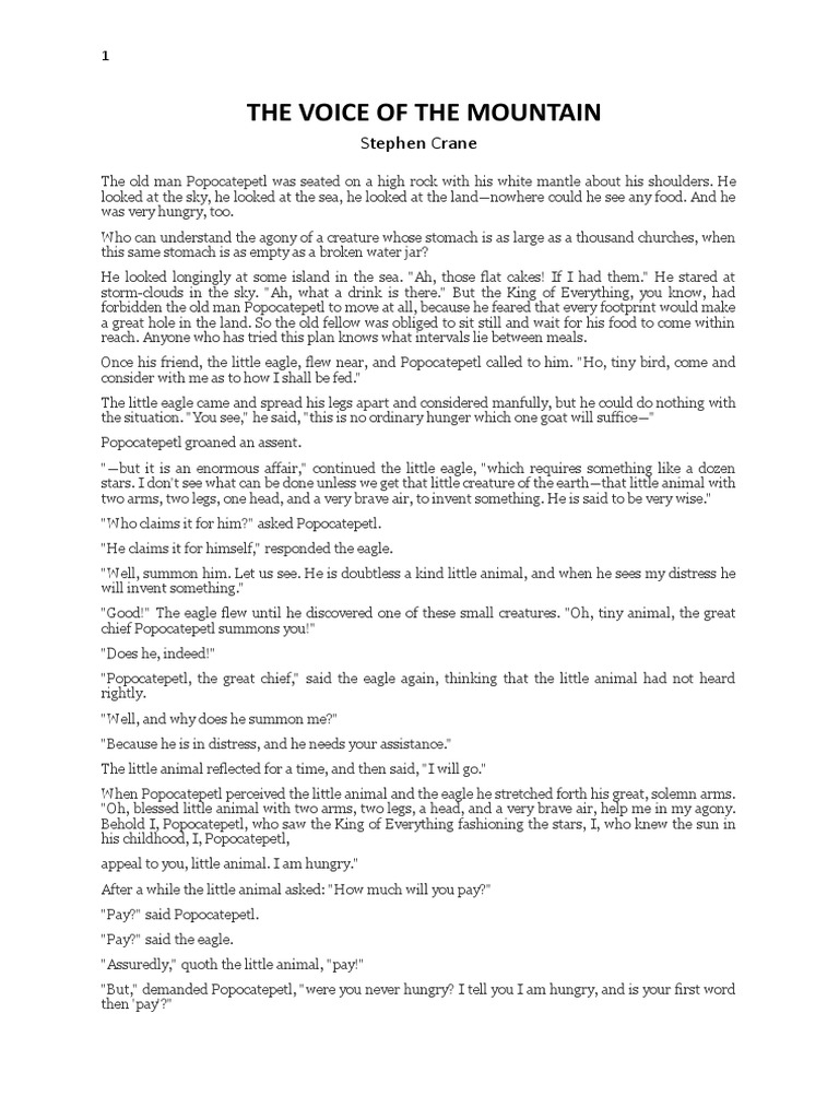 Story Narration The Voice of the Mountain by Stephen Crane DepEd