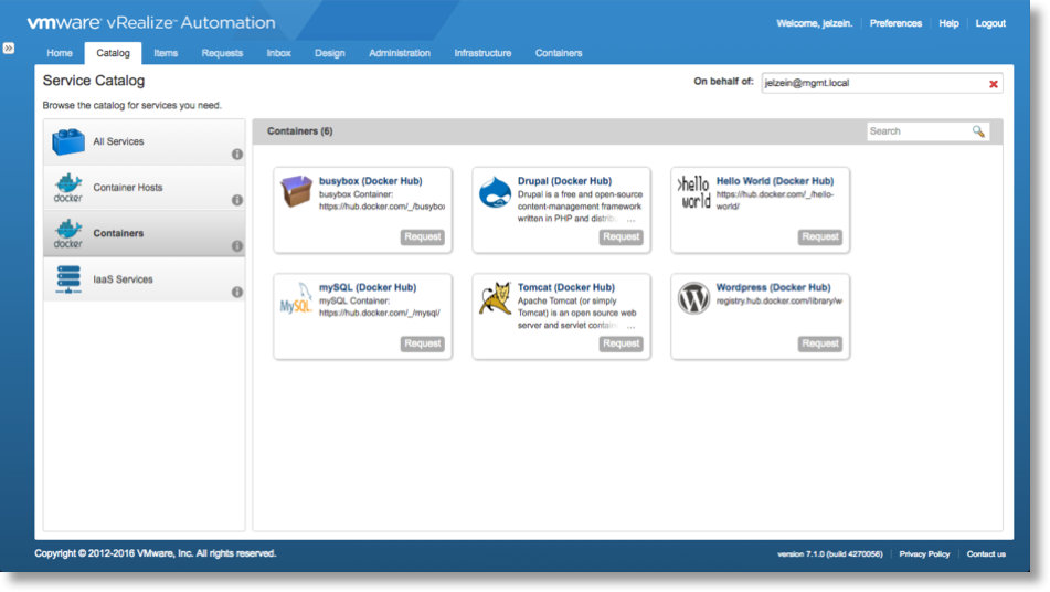 Vrealize Automation 7.4 Service Catalog Screenshot