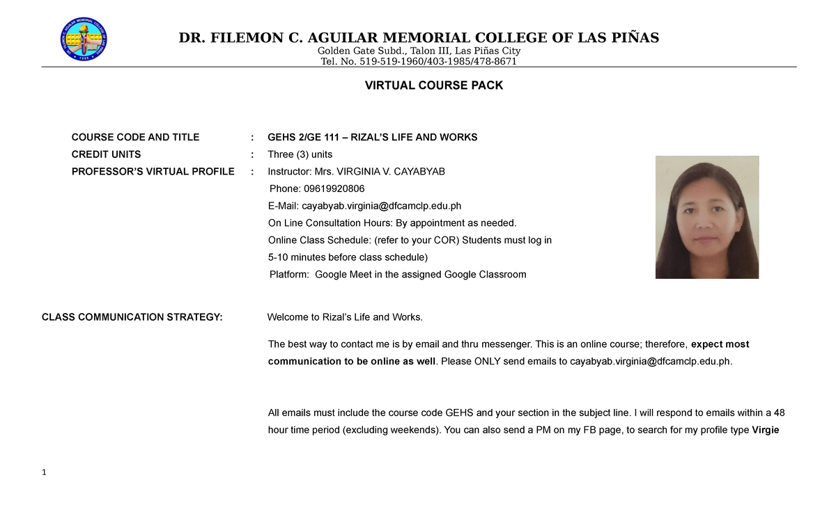 Virtual Course Pack Rizal's Life and Works by VVC BSE Education Studocu