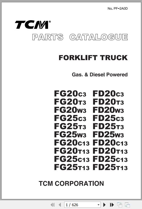 TCM Forklift FD20 FD25 FG20 FG25 C3 T3 W3 Parts Catalog PF2A0D