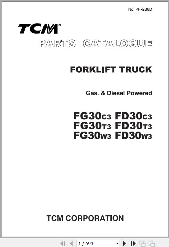TCM Forklift FD30 FG30 C3 T3 W3 Parts Catalog PF2B8D