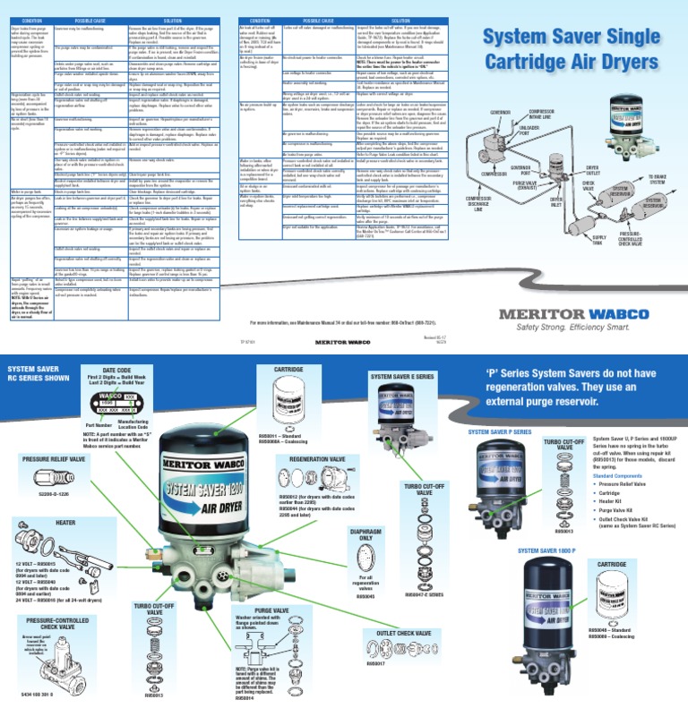 Meritor Wabco Ss1200 Ss1800 Air Dryers Tp97101 Valve Leak