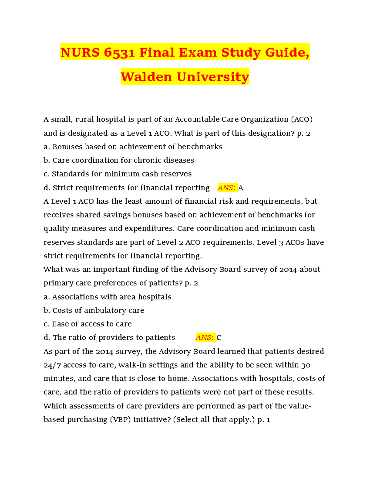 NURS 6531 Final Exam Study Guide, Walden University What is part of