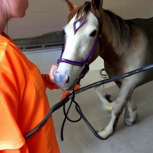 horse wearing orange inmate clothes, in a jail Stable Diffusion