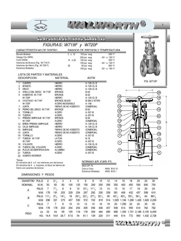 Walworth Valvulas de Hierro 719F y 726F PDF Tornillo Acero