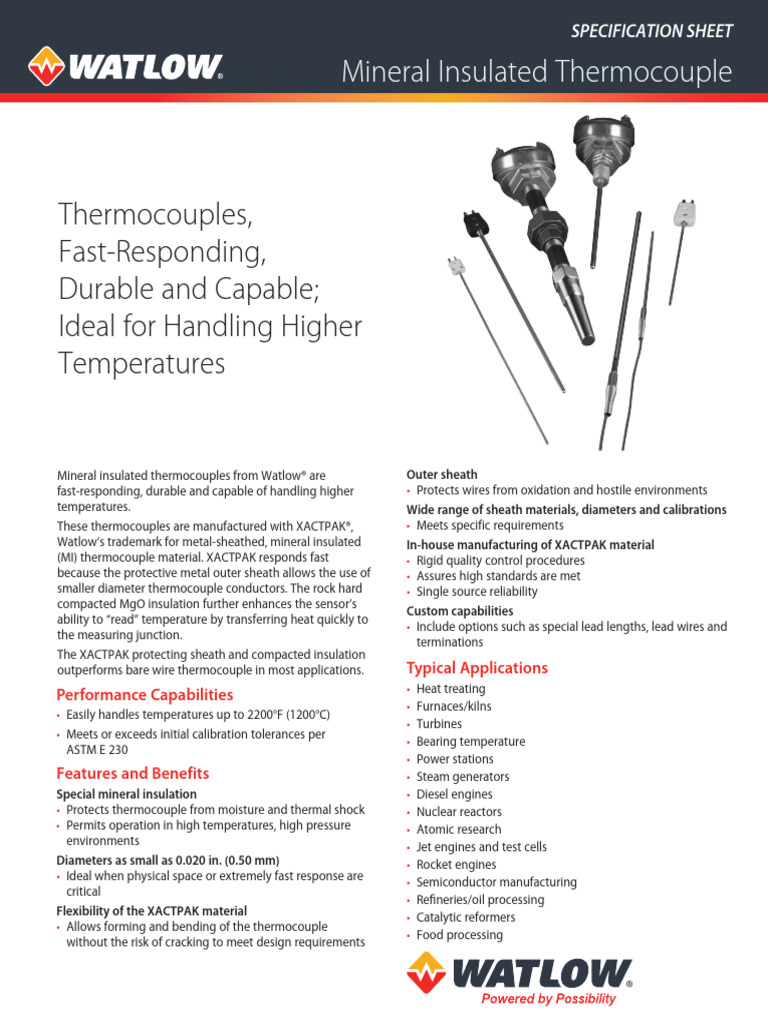 Watlow Mineral Insulated Thermocouple Download Free PDF Electrical
