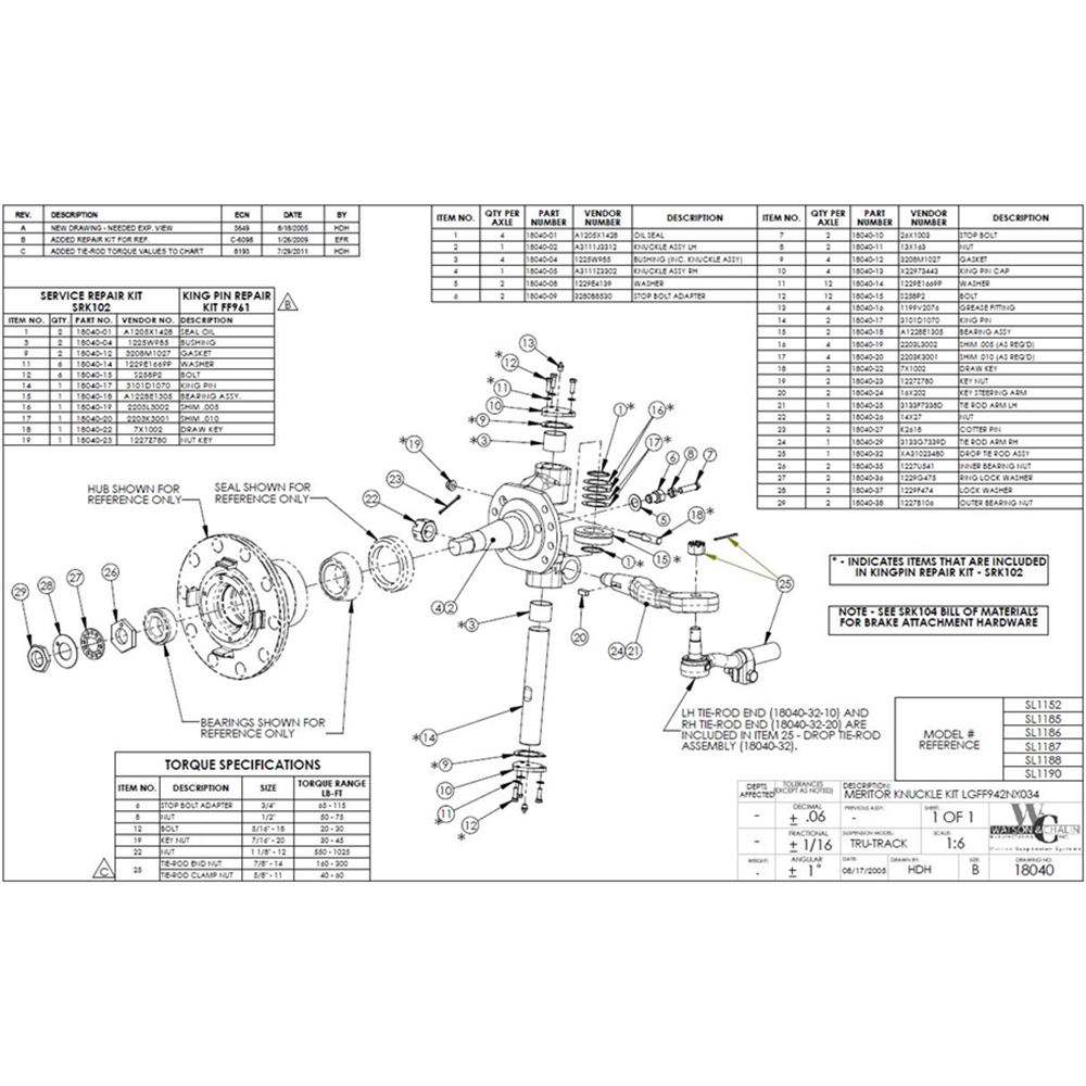 MPParts Watson Chalin SRK98 Kingpin Kit for Westport 13K Axle SRK98