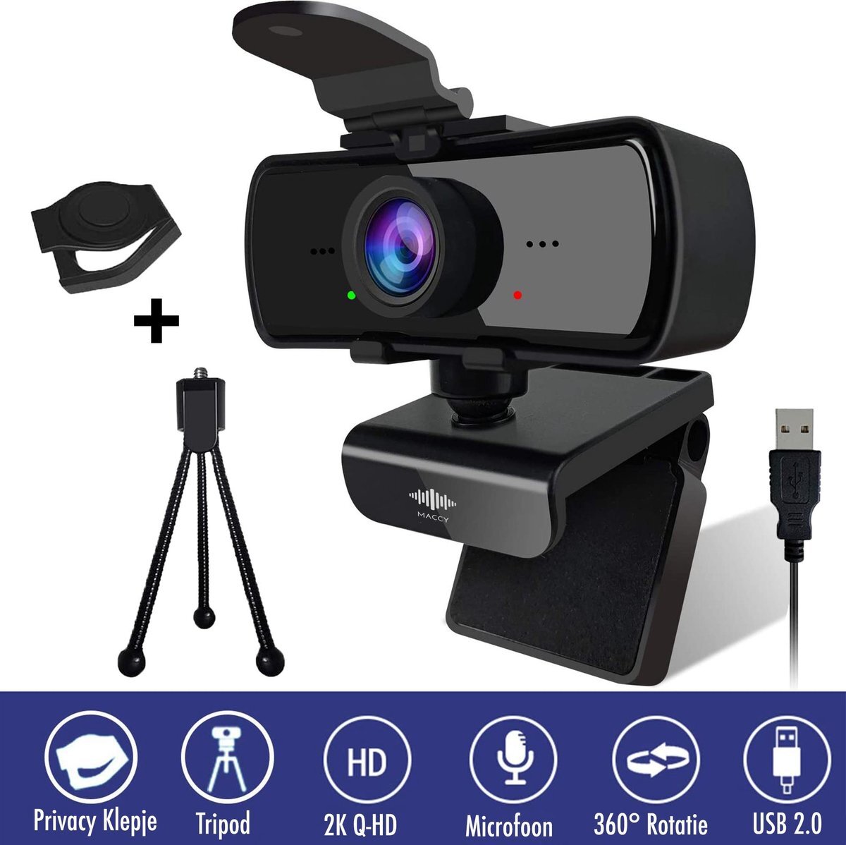 Maccy Webcam 4 MP Webcam met Microfoon en Tripod! 2K 30FPS