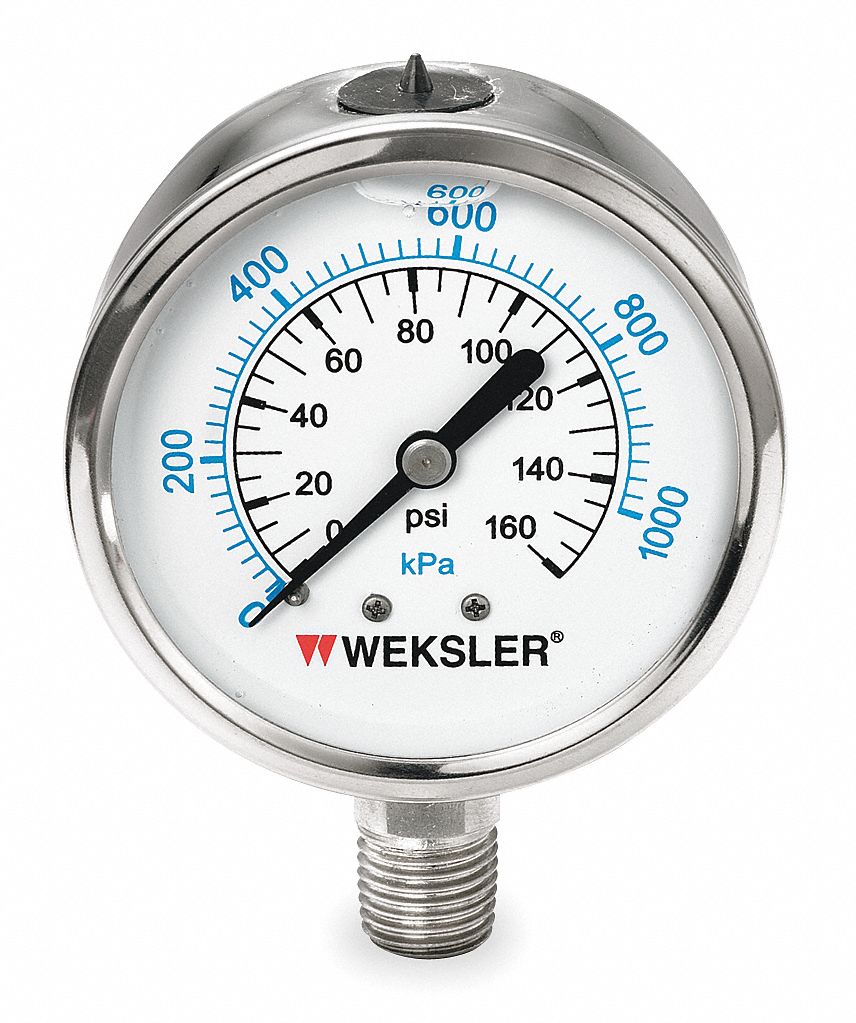 WEKSLER, 160 psi to 0 psi to 160 psi, 2 1/2 in Dial, Pressure Gauge