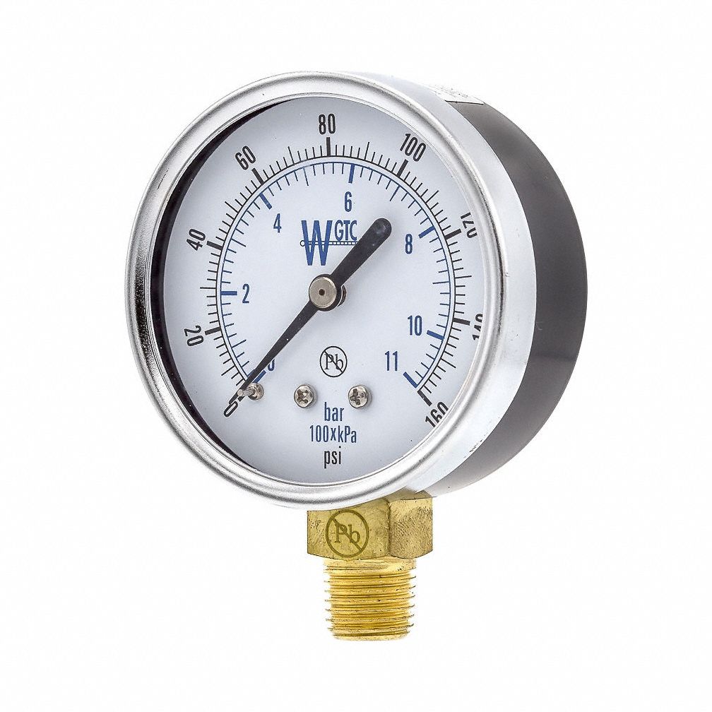 WEKSLER Pressure Gauge, 0 to 160 psi Range, 1/4 in NPT, ±323 Gauge