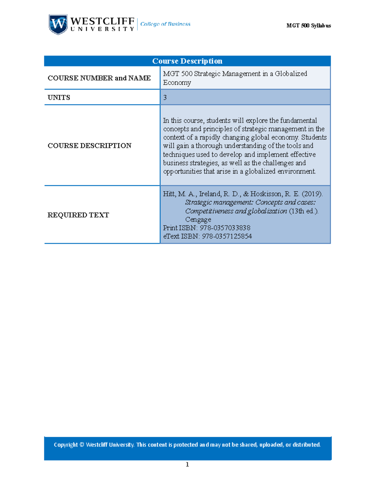 Summer 5 & 6 2023 MGT500 Syllabus Hitt13E Smart Copyright