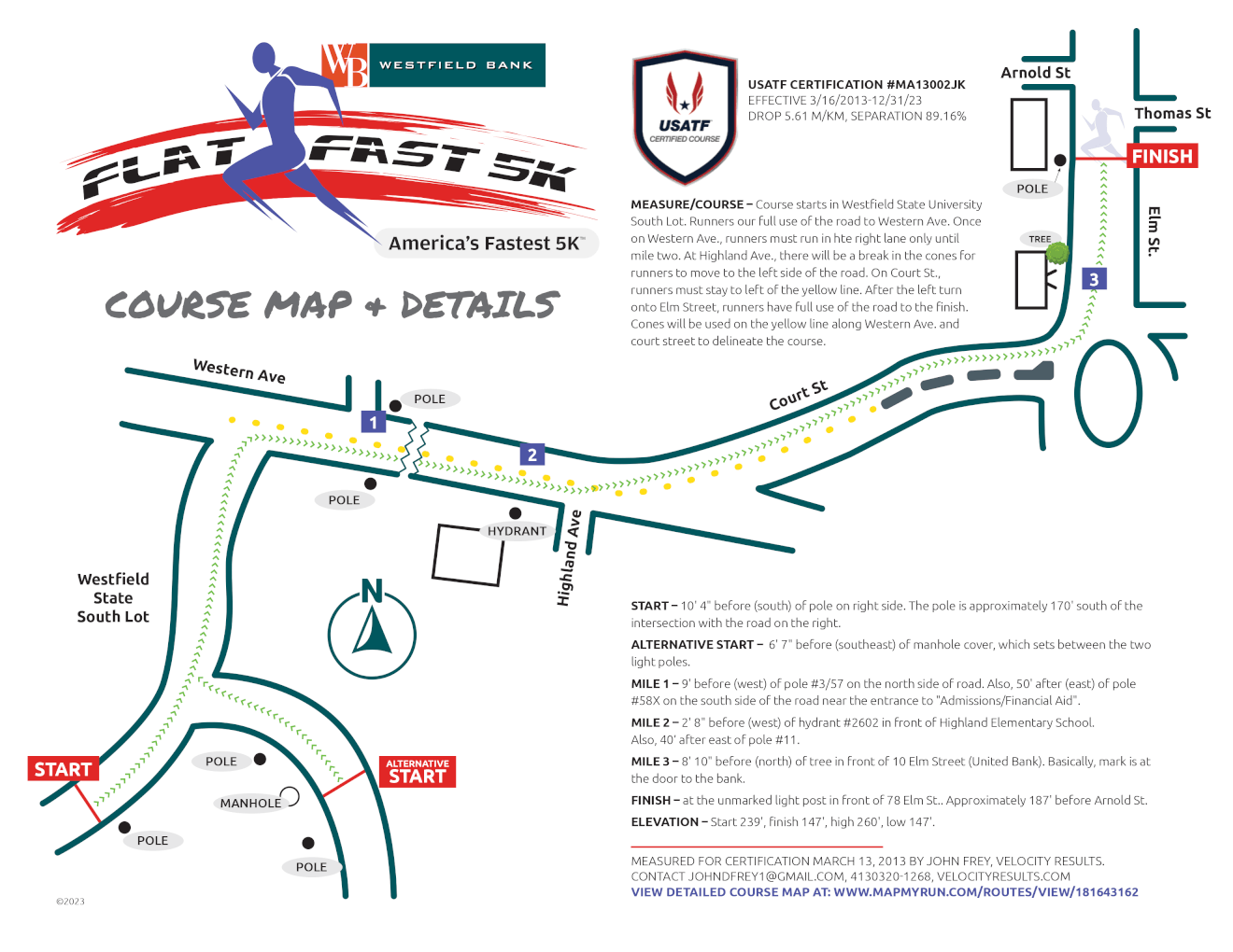 Course Map Flat Fast 5K May 4, 2024 Run Westfield