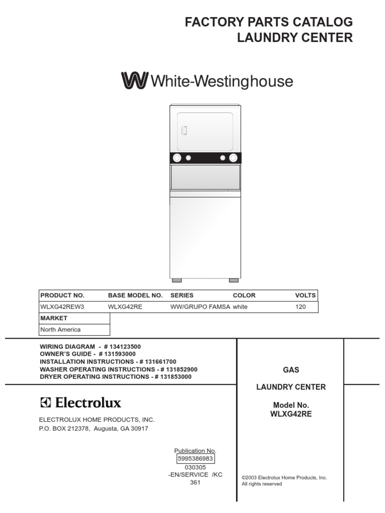 WhiteWestinghouse Factory Parts Catalog Laundry Center PDF