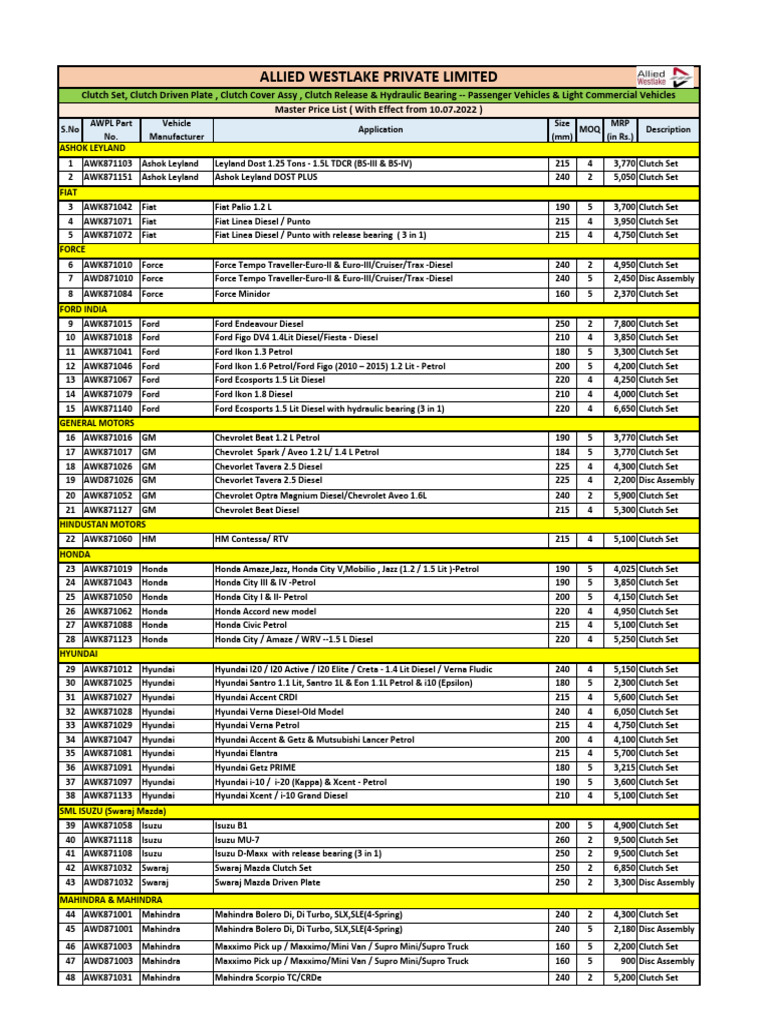 Allied Westlake Clutch Sets PDF Volkswagen Chevrolet