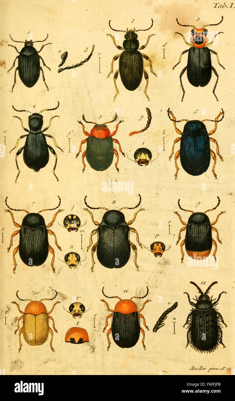 This 1806 catalog systematically lists species of beetles (Coleoptera