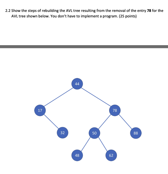 Solved 2.2 Show the steps of rebuilding the AVL tree