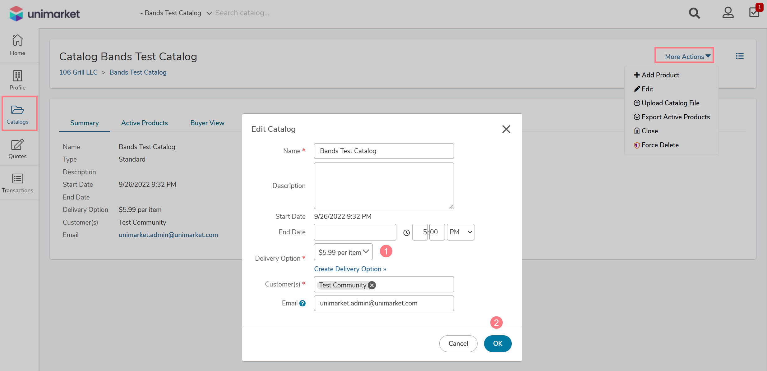 Closing/Reopening a Hosted Catalog Unimarket Supplier Help