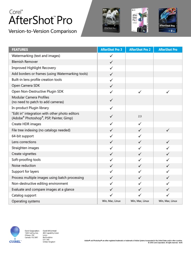 VersionToVersion Comparison Aftershot Pro 3 Aftershot Pro 2