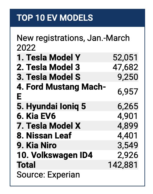 Whole Mars Catalog on Twitter "Top 10 EV models in the United States