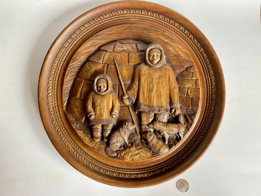 Vintage Inuit Life Art Plaque, Karl Rothammer Work, Vintage Faux Wood
