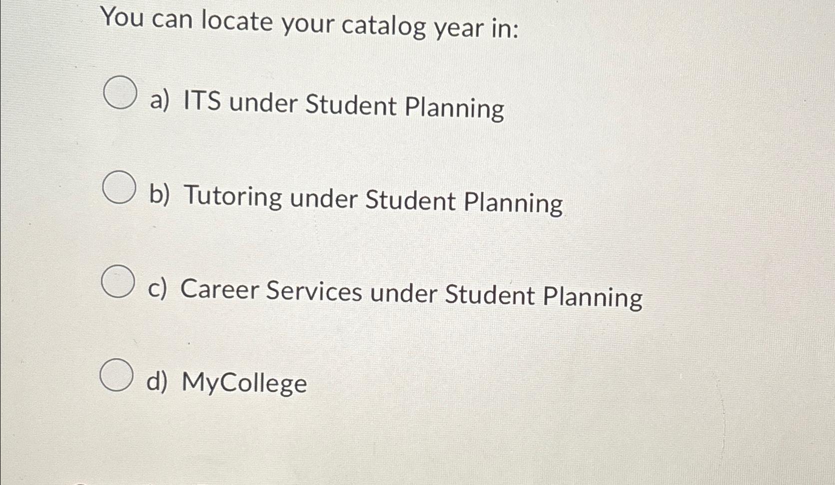 Solved You can locate your catalog year ina) ITS under