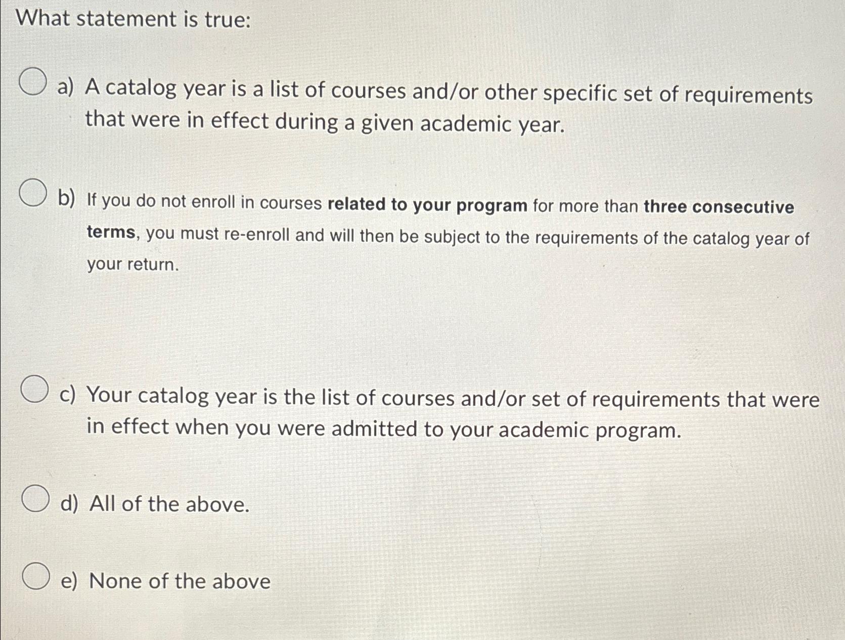 Solved What statement is truea) A catalog year is a list