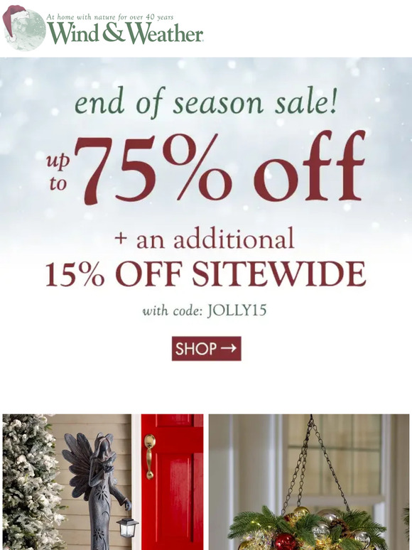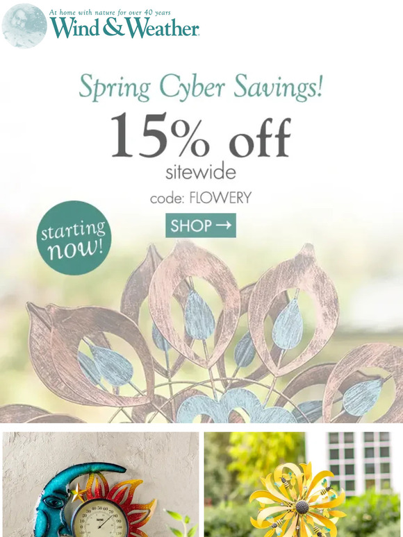 Wind and Weather Sitewide Spring Savings Start NOW! Milled
