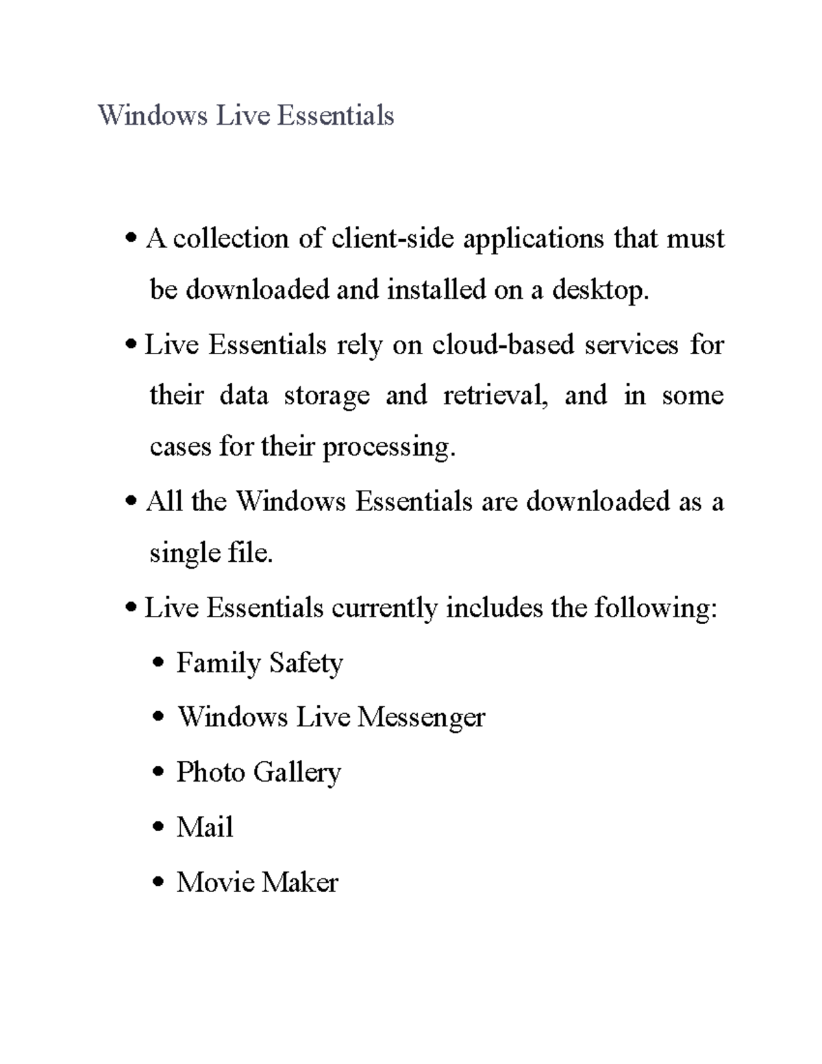 Windows Live Essentials Live Essentials rely on cloudbased services