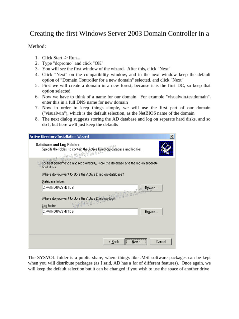 Creating The First Windows Server 2003 Domain Controller in PDF
