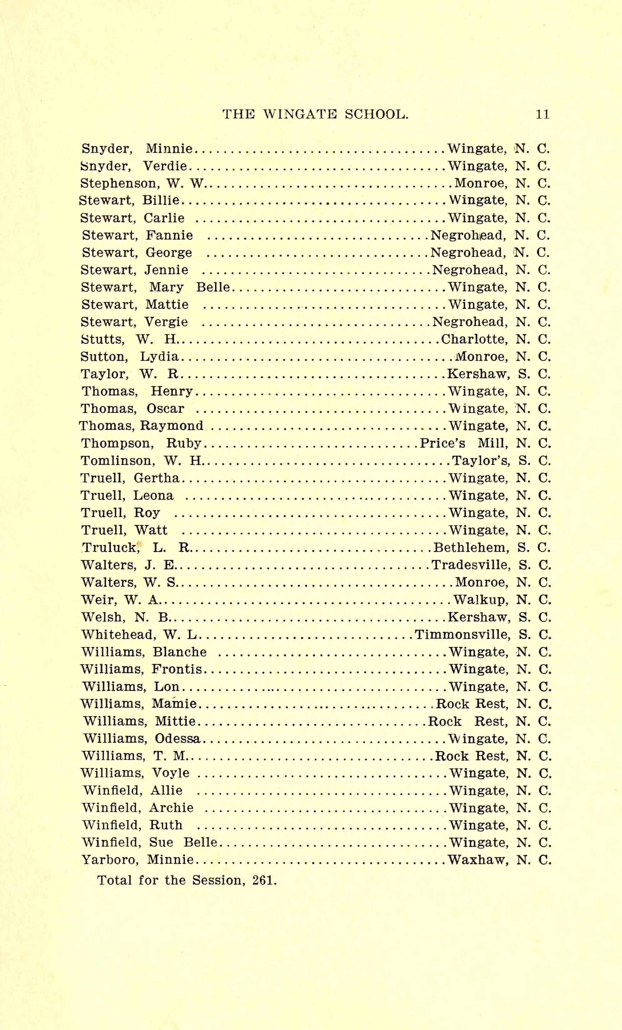 The Wingate School Catalogue [19001901]