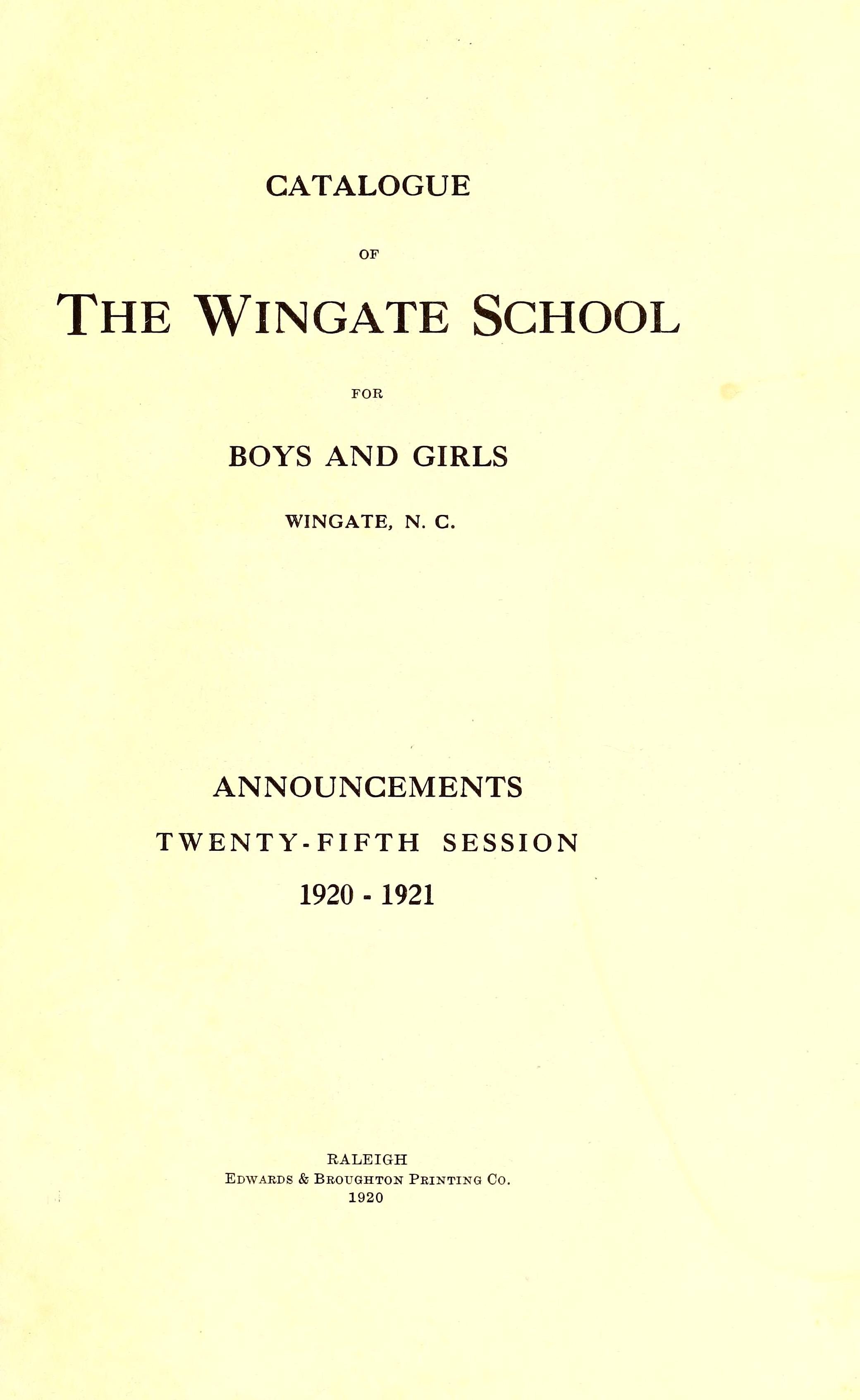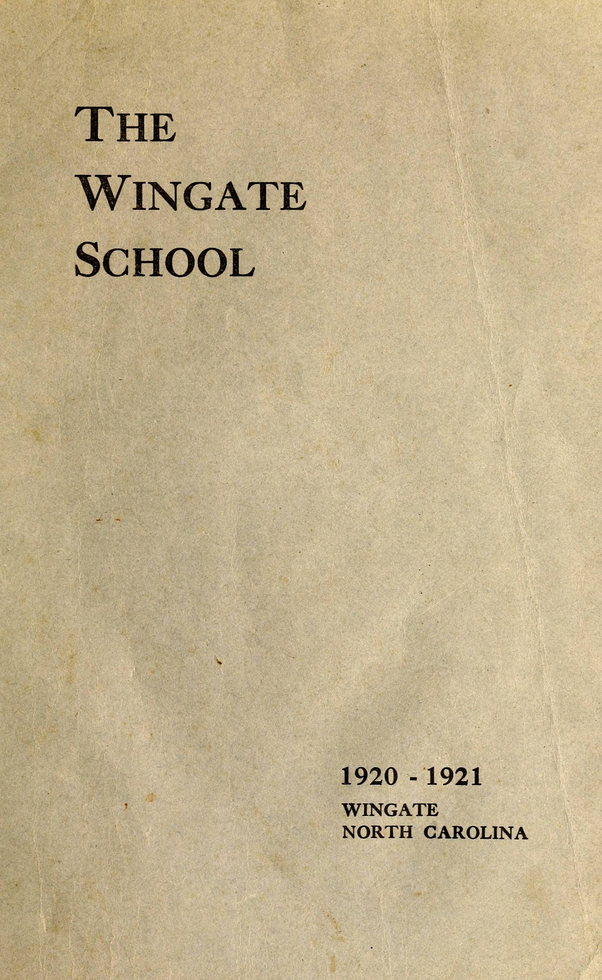 The Wingate School Catalogue [19201921]
