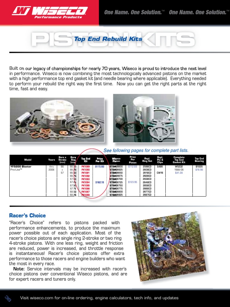 Catalogue Wiseco PDF Piston Cylinder (Engine)